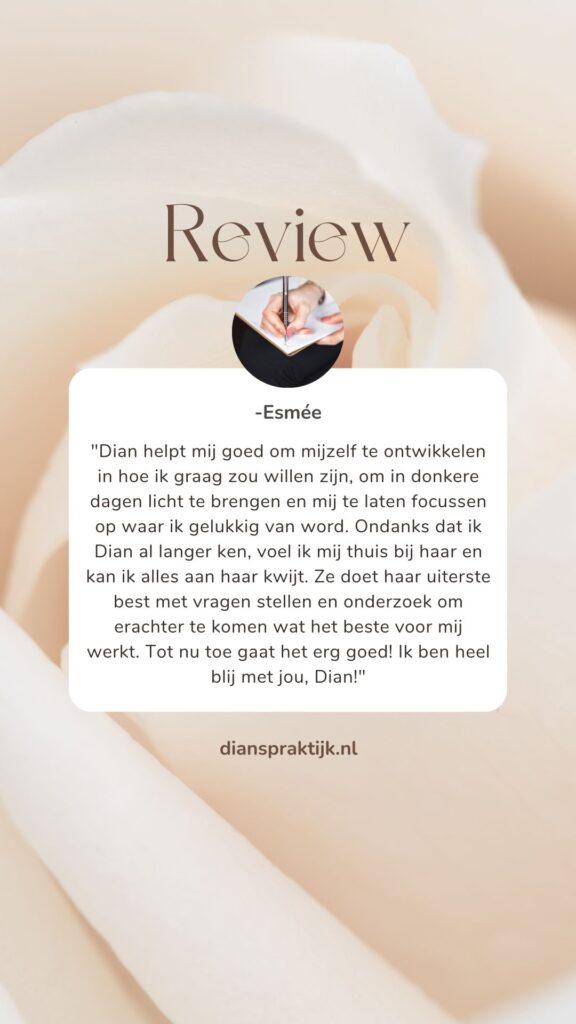 Ik ben ooit begonnen als leerkracht in het (speciaal) basisonderwijs en als dansdocente. Ik heb het altijd leuk gevonden om mensen nieuwe dingen te leren. Daarna heb ik een tijd bij de Raad voor de Kinderbescherming gewerkt. Ook het oplossen van problemen, voornamelijk in denken en gedrag, vond ik ontzettend interessant. Het verplichte karakter en het werken onder druk van beide sectoren sprak me toch wat minder aan, omdat ik voor mijn gevoel nooit genoeg kon doen in de tijd die er was. Daarna ben ik terecht gekomen bij Personal Fitness Nederland waar ik als coach en personal trainer heb gewerkt. Hier kwamen mensen omdat ze zelf graag wilden veranderen en kon ik mijn hulp afstemmen op de klant. Omdat ik dat heel leuk vond en op mijn eigen manier wilde gaan doen (meer gericht op mentale ontwikkeling en in 1 op 1 settings), ben ik Dian’s Praktijk begonnen in 2022!